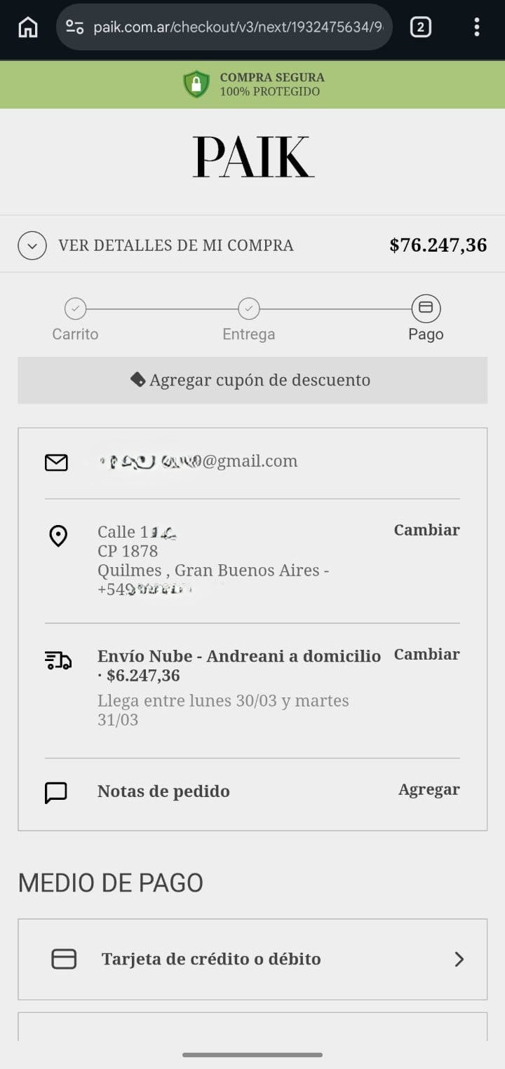 En la página de confirmación, verificá todos los datos: productos, dirección, envío y pago. Si todo está bien, confirmá la compra.